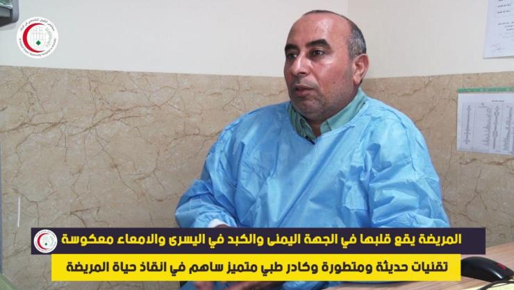 ان المريضة هذه تعد نادرة جداً لكون القلب لدى الانسان الطبيعي يكون يسارا وإكتشفنا قلبها في جهة اليمين والكبد والامعاء والاثني عشر كانوا في الجهة اليسرى، هذا ما بينه رئيس الفريق الطبي المعالج في المستشفى الدكتور هادي الخطابي اختصاصي ناظور الجهاز الهضمي.