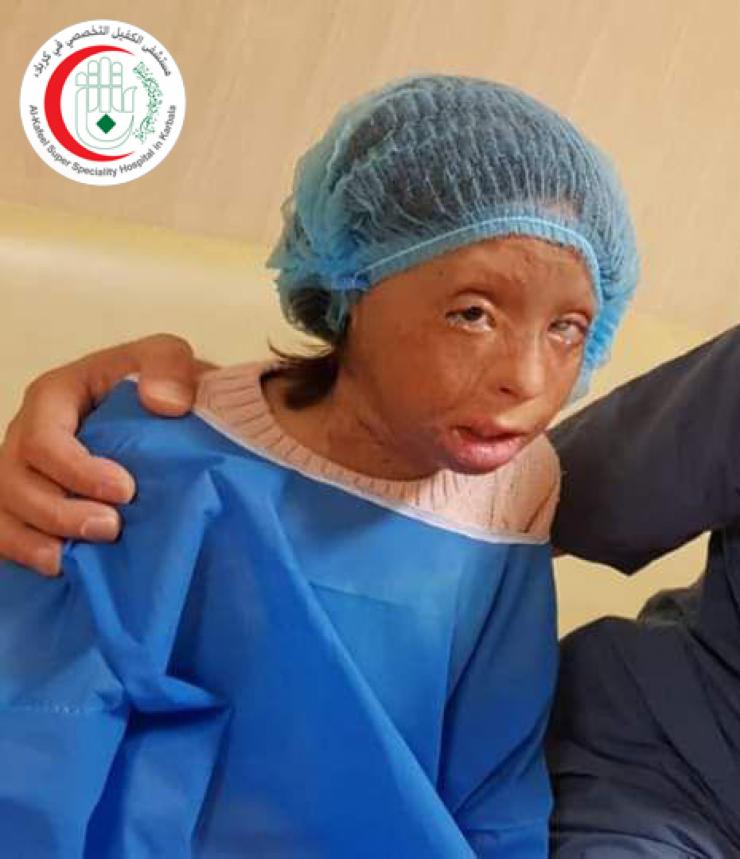 الطفلة رقية ميثم بعمر الثمانية اعوام تعرضت الى حادث ادى الى اصابتها بحروق في كامل جسمها الرقيق وكذلك تلف في قرنية عينها.