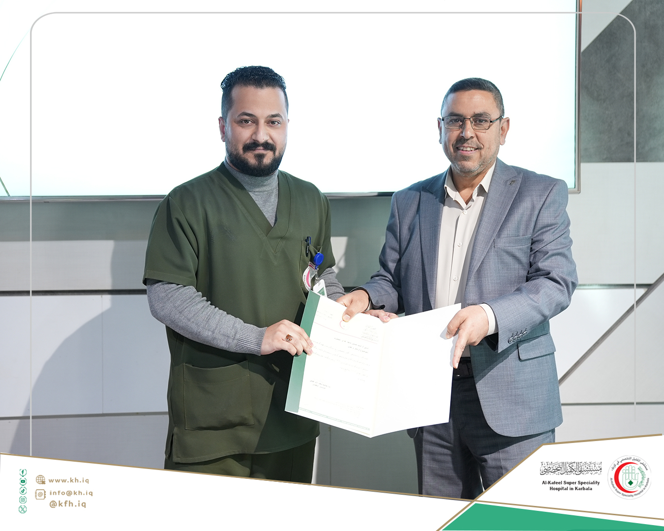 وأضاف النصراوي، إن عدد ممن إشتركوا بتدريباتنا من موظفي المستشفى بلغ (752) موظفاً، تدربوا بنحو (24) تخصصاً ضمن تخصصات أقسام وشعب المستشفى المختلفة، وساهمنا بإنجاز (20) بحثاً أكاديميا في الدراسات الأولية والعليا بتخصصات طبية ومختبرية ومالية وتقنية مختلفة لباحثين من جامعات بغداد وبابل وكربلاء ووارث الأنبياء والزهراء والعميد، إضافة إلى جامعة صفاقص من تونس وجامعة إيران للعلوم الطبية، مردفاً إنه في جانب الزيارات العلمية والتدريبية إستقبلنا (1390) طالباً وطالبة من جامعات وكليات حكومية وأهلية من كربلاء ومحافظات أخرى، بمختلف التخصصات التي ترتبط بتقديم الخدمات في القطاع الصحي.