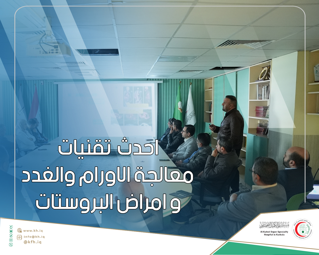 جاء ذلك على هامش الورشة العلمية التي نظمتها المستشفى بحضور عدد من الأطباء الإختصاص بمجال أمراض وجراحة الأورام والكلى والمسالك البولية والغدد الصمّاء، والتي جاءت بهدف التداول بشأن آخر المستجدات التقنية الطبية في التشخيص والمعالجة.