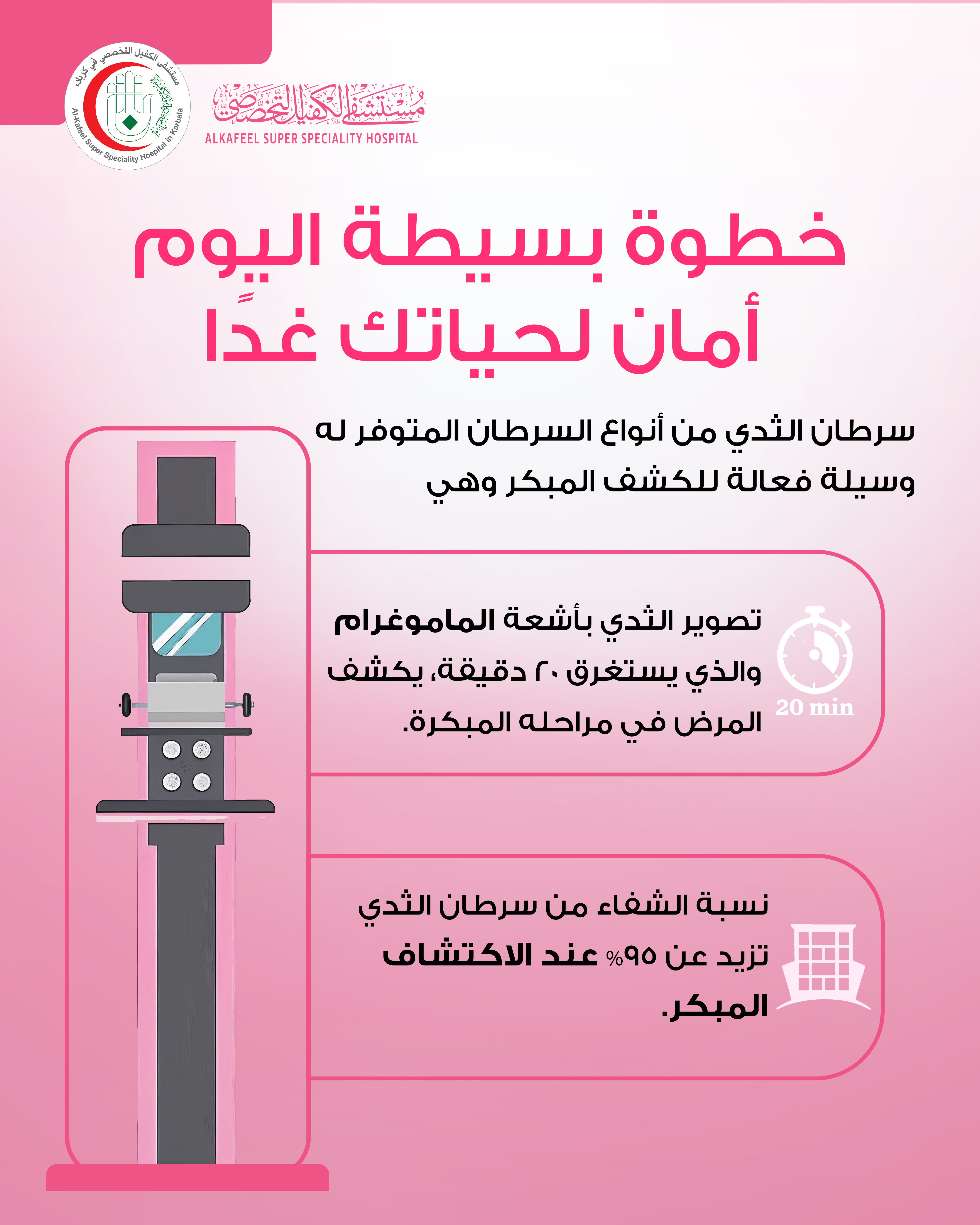 مستشفى الكفيل تُشددُ على أهمية الكشف المبكر عن سرطان الثدي