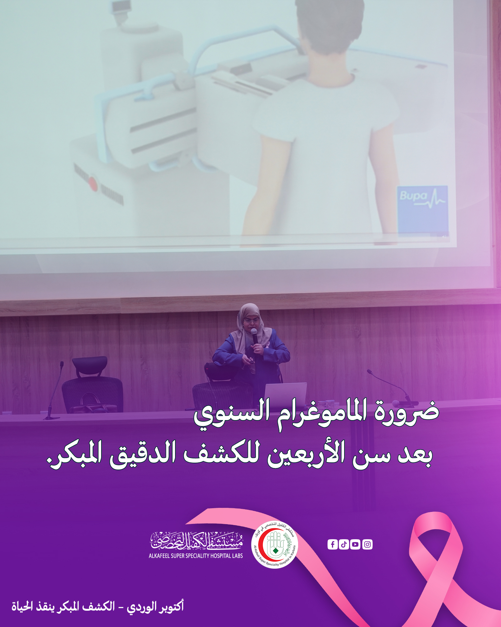 وشددت الهاشمي على أهمية الفحص الذاتي الذي يمكن للسيدة إجراؤه داخل المنزل بشكل دوري، كخطوة أولى للكشف عن أي تغيرات غير طبيعية، لافتة الى ان مفتاح الشفاء والمحور الأبرز في المحاضرة هو التأكيد على ضرورة إجراء فحص الماموغرام (أشعة الثدي)، خاصة للسيدات ضمن الأعمار 40 عاماً فما فوق.