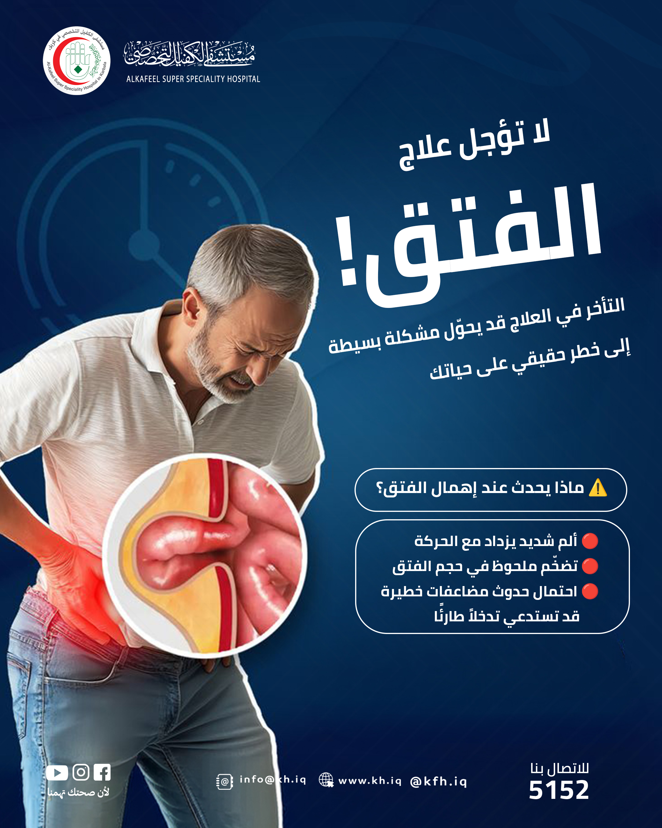 التأخر في علاج الفتق قد يحول مشكلة بسيطة الى خطر حقيقي على حياتك