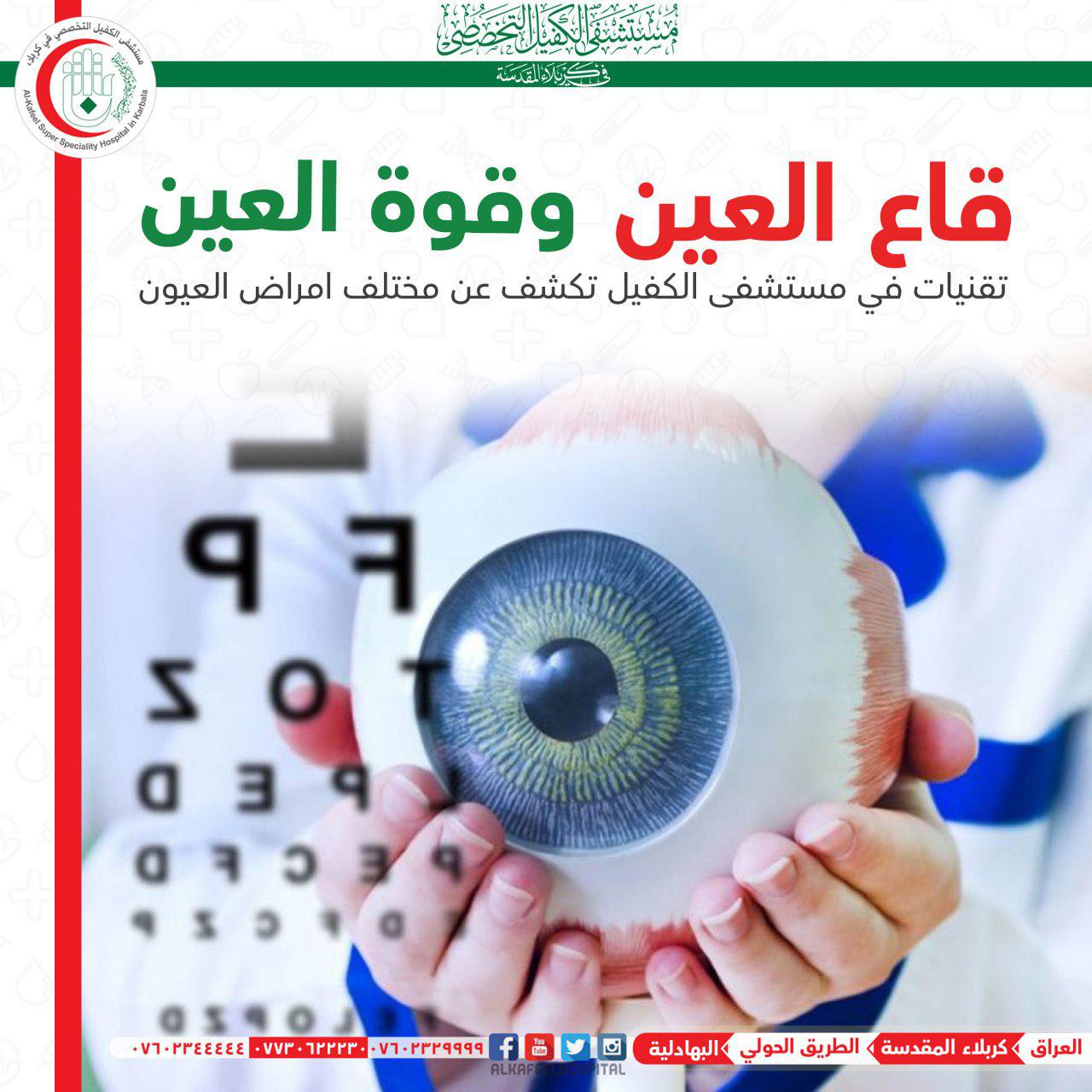 اعلن مستشفى الكفيل التخصصي في كربلاء تحقيقه نقلة نوعية بمعالجة مختلف امراض العيون بعد اعتماده تقنيات متطورة في هذا المجال منها تقنية قاع العين وقوة العين واستطاعته معالجة مختلف الاصابات التي تتعرض لها العين.