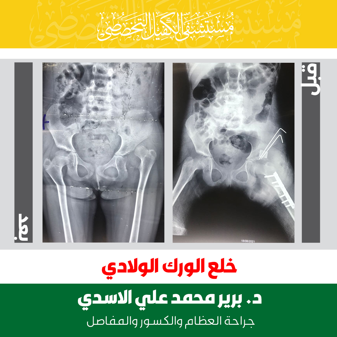 وقال إختصاصي جراحة العظام والكسور والمفاصل، د. برير محمد علي الأسدي، في حديث صحفي، أنهينا معاناة طفلة بعمر تسعة أعوام مع خلع الورك الولادي الذي لازمها وسبب لها مشاكل بالحركة، واصفاً تلك الحالة بأنها معقدة لكون عمر الطفلة كبير ولم تُجرى لها عملية إعادة الخلع بوقت مبكر.