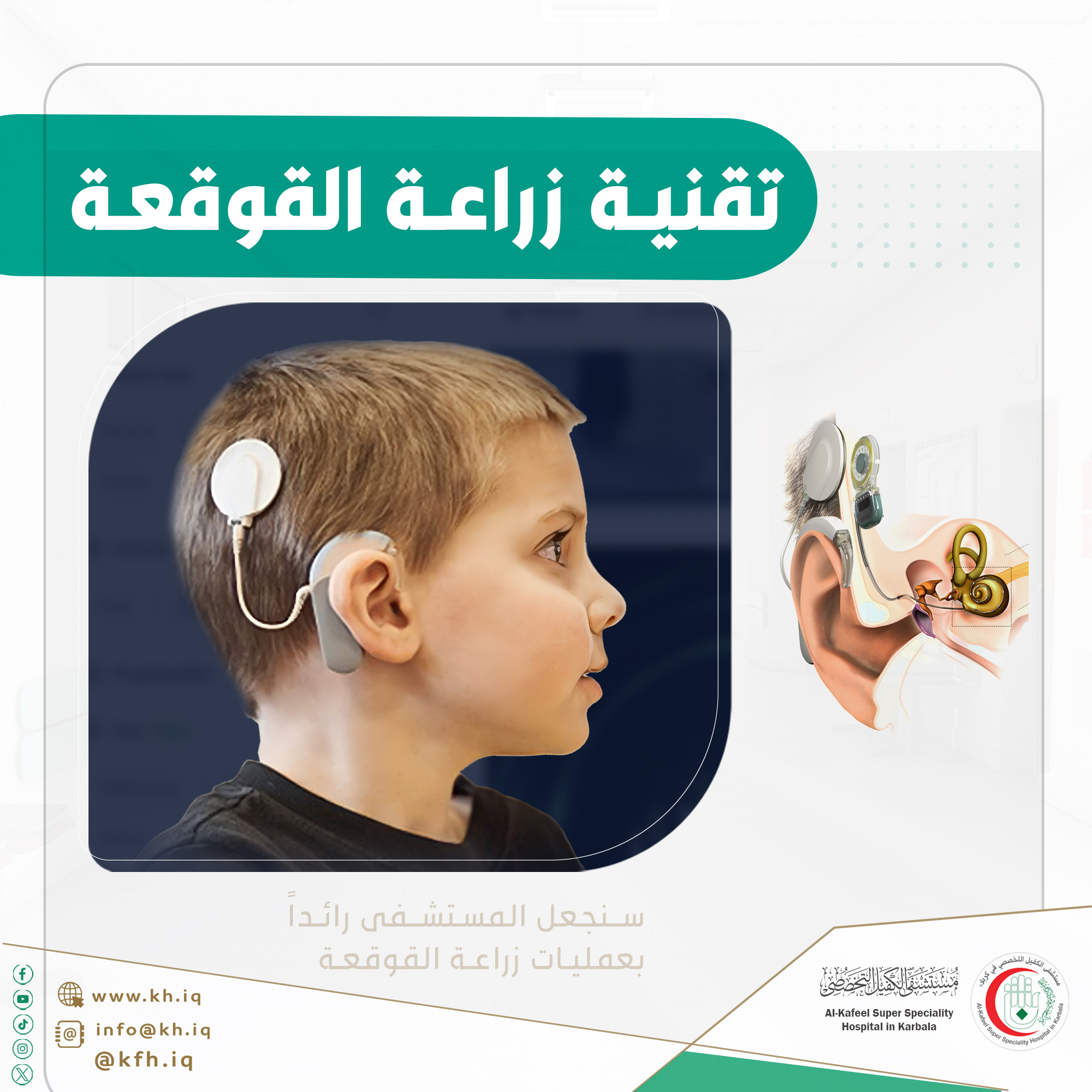 مستشفى الكفيل التخصصي بكربلاء يوفر أجهزة زراعة القوقعة وكل ما يلزم لأجراء عملياتها، فتقنيات المستشفى وصالات العمليات مؤهلة لذلك.