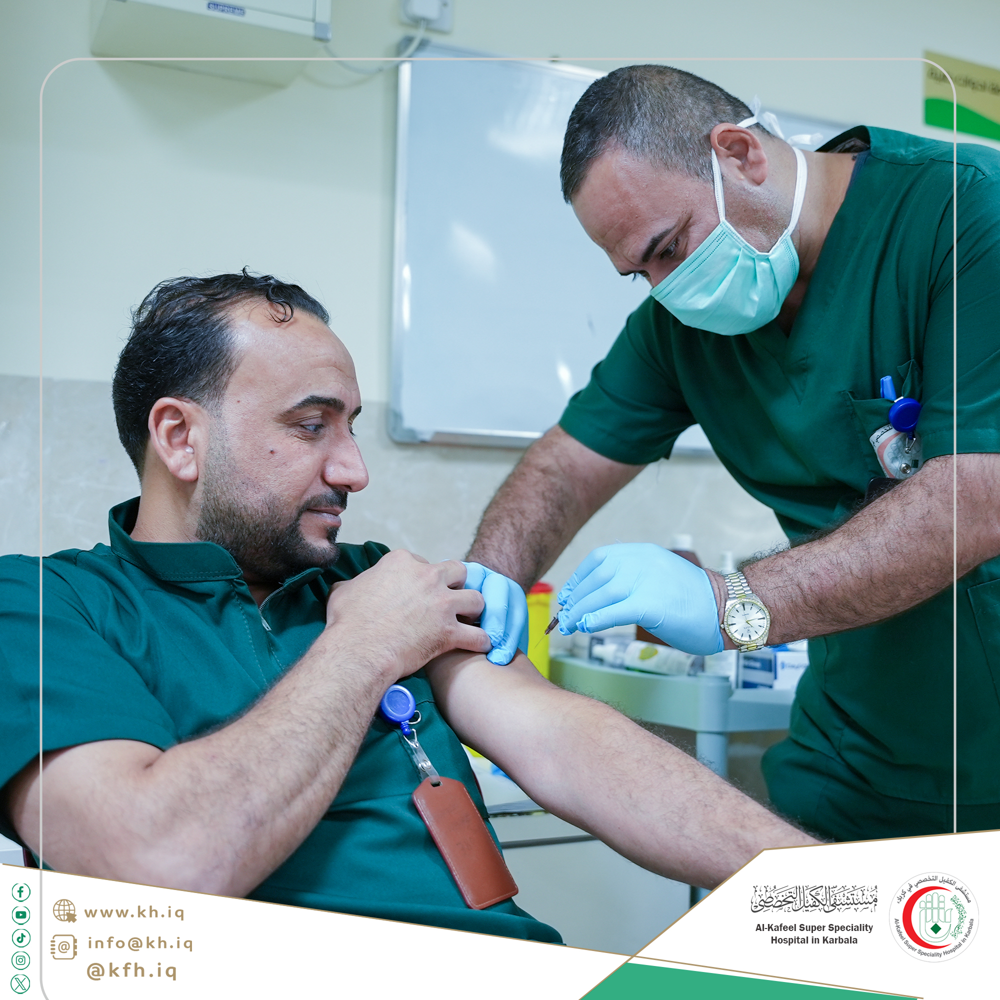 وفرَّ مستشفى الكفيل التخصصي، من خلال التعاون مع دائرة صحة كربلاء المقدسة اللقاحات الخاصة بمرض التهاب الكبد الفيروسي لمنتسبيه حرصاً منه على حياتهم وصحة عوائلهم، كونهم على تماس مباشر مع المرضى، فيما كشف عن سعيه لتوفير لقاحات أُخرى للأمراض الانتقالية.
