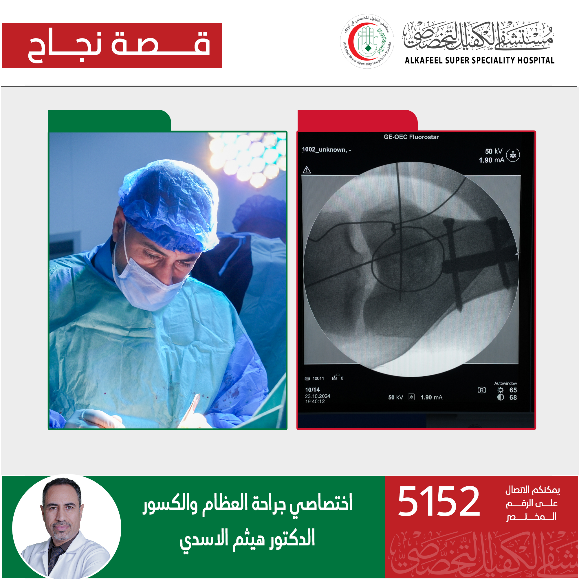 وبين الاسدي، أجرينا للمريض عمليتين في آن واحد تم خلالها تثبيت كسر عظم الفخذ بواسطة الشيش المقفول ومن ثم تجميع قطع العظام المتكسرة لعظم الرضفة وتثبيتها، مؤكدا نجاح العملية وأنها حققت نتائج آنية كانت جيدة جدا والحالة الصحية للمريض بدأت بالتحسن ومع العلاج الطبيعي سيعود لحالته الطبيعية.