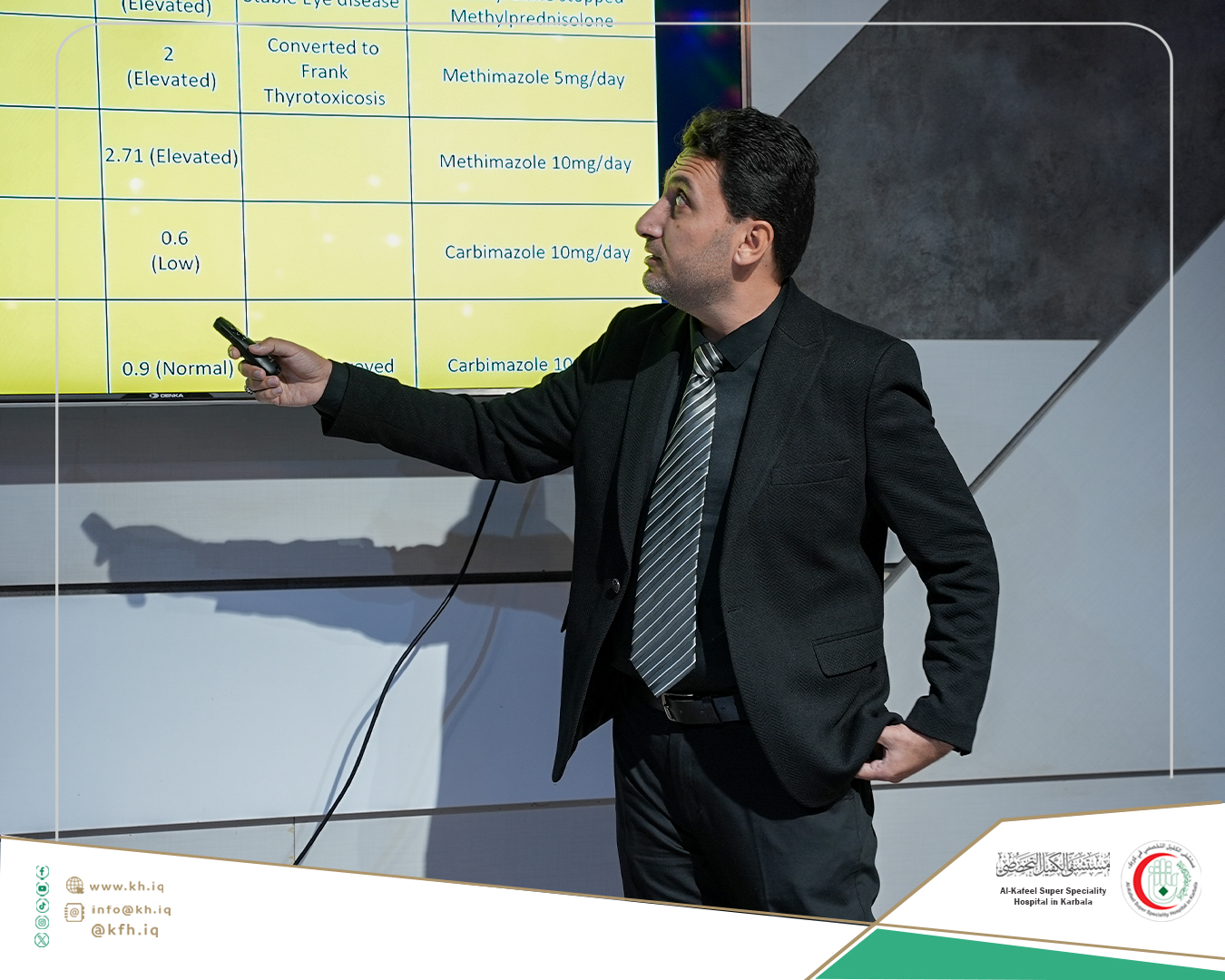 جاء ذلك على هامش الورشة العلمية التي اقميت على قاعة المؤتمرات في مستشفى الكفيل التخصصي، والتي جاءت بالتعاون ما بين المستشفى ومركز الامام الحسن (ع) للغدد الصم والسكري، التابع لدائرة صحة كربلاء المقدسة.