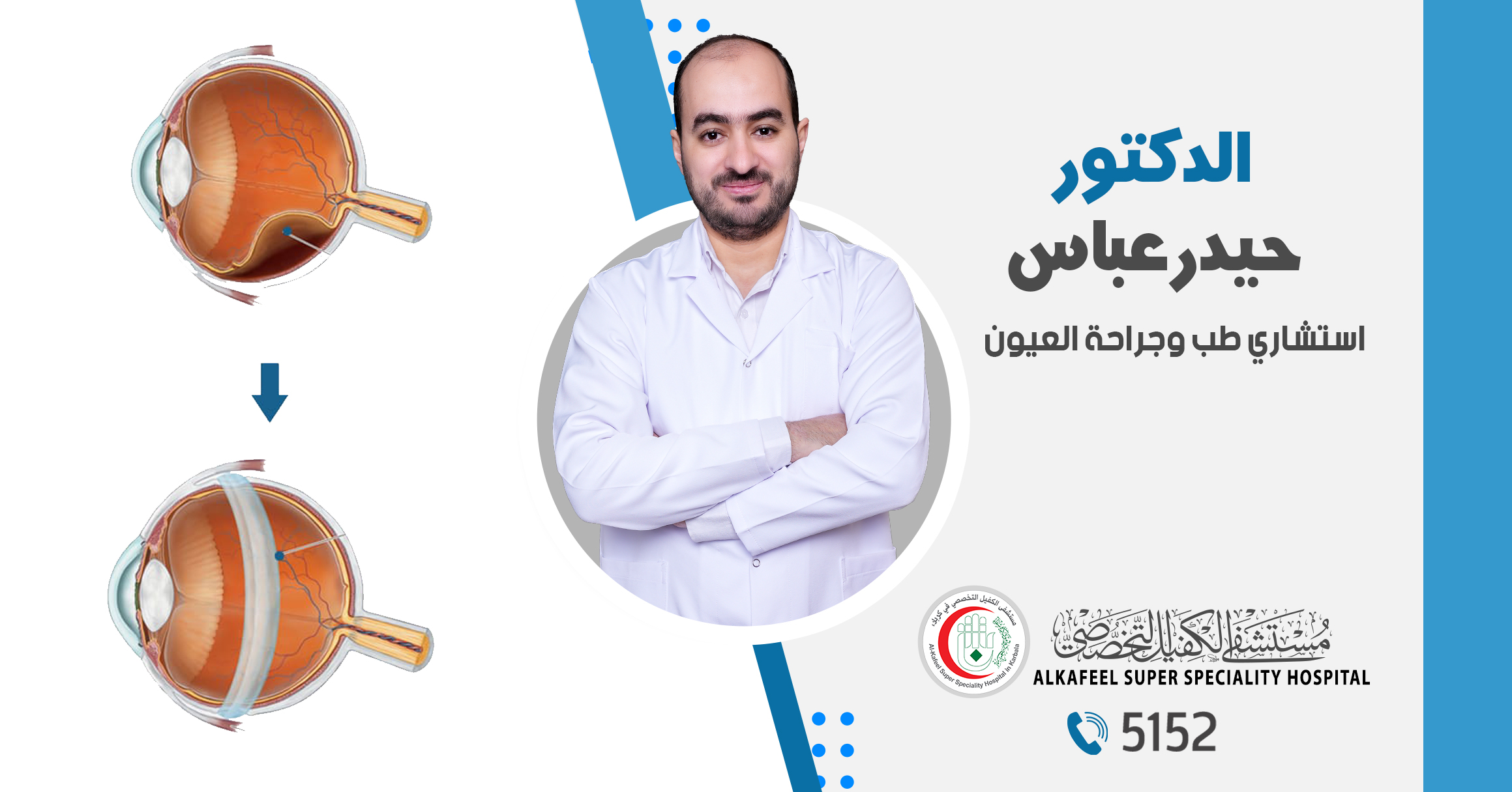 وذكر الدكتور حيدر عباس اختصاصي جراحة العيون في المستشفى، إن حالة المريض كانت معقدة للغاية، حيث رافق انفصال الشبكية تليفات قوية بالإضافة إلى إعتام عدسة العين (مياه بيضاء).