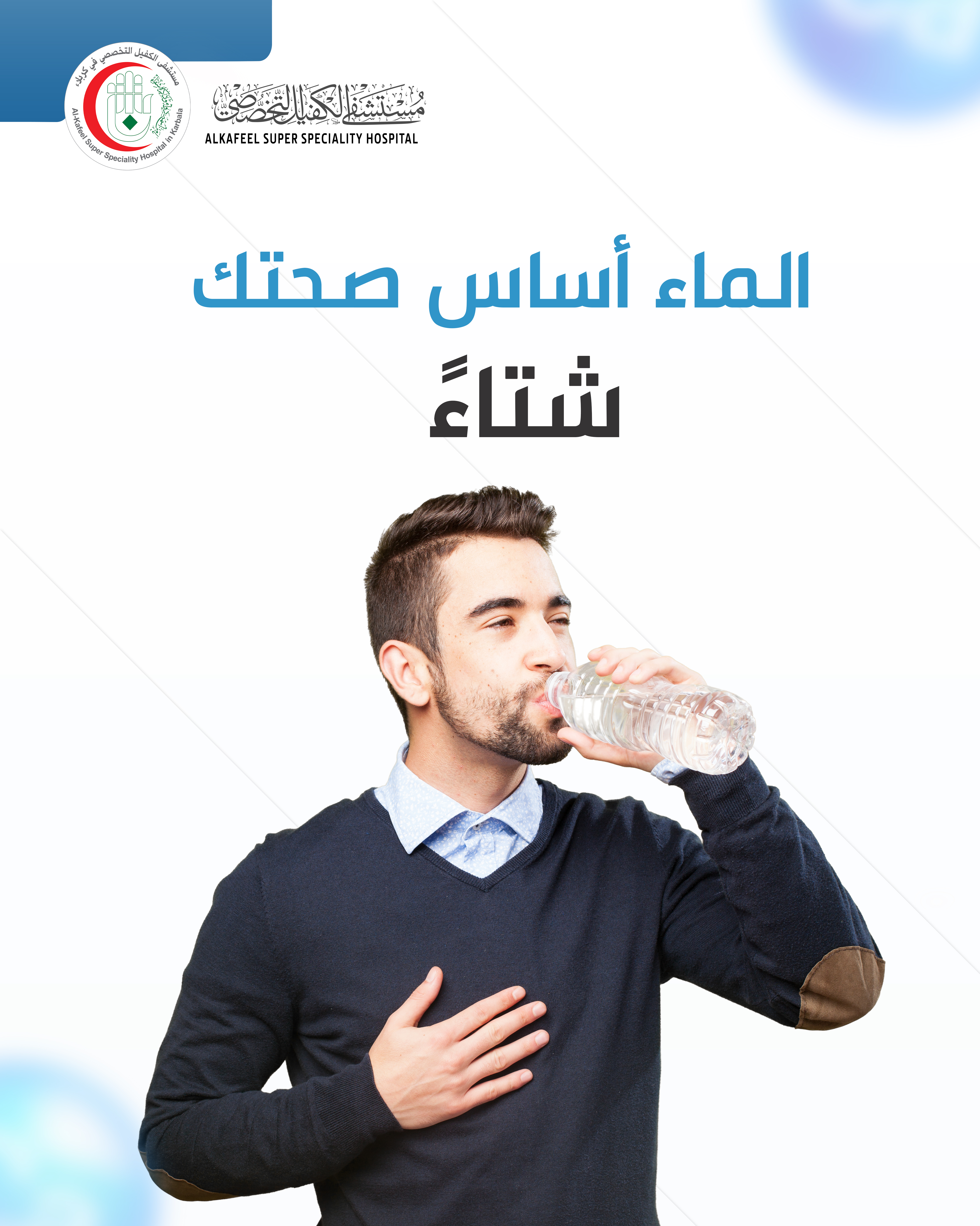 يتكون جسم الإنسان من 70 في المائة من الماء . لهذا السبب نحتاج لشرب الماء طوال العام للحفاظ على رطوبة الجسم وصحة جيدة. وفي حين يعتقد البعض أن الحاجة إلى شرب الماء في الصيف أكثر من الشتاء، لكن في الواقع يحتاج الجسم خلال فصل الشتاء للكثير من الماء أكثر من الصيف، إذ يفتقر الهواء إلى الرطوبة وقد يؤدي إلى مشاكل صحية متعددة.
