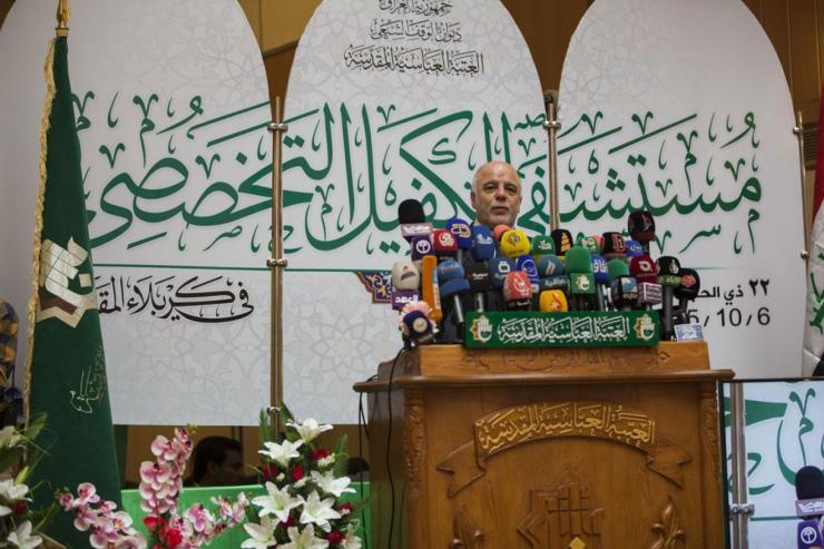 هذا المشروع الذي أُنجز ونحن نخوض حرباً مقدّسةً مع أعداء الأمّة يمثّل حالةً من التقدّم ويُعَدّ نقلةً نوعيّةً في الشراكة بين القطاعين العام والخاص، وأنا أدعو لتعميم تجربته والاستفادة منه في باقي المحافظات العراقية لتطّلع عليه وعلى كيفيّة إنجازه في فترةٍ قياسية وكسر وتجاوز جميع القيود الإدارية الحكومية والبيروقراطية.. هذا ما بيّنه رئيسُ الوزراء العراقيّ خلال الكلمة التي ألقاها في حفل افتتاح مستشفى الكفيل التخصّصي التابع للعتبة العباسية المقدّسة، الذي أُقيم عصر اليوم الثلاثاء (22ذي الحجّة 1436هـ) الموافق لـ(6تشرين الأوّل 2015م)، والتي جاء فيها: "أنا أبارك لكم وأهنّئكم على هذا الإنجاز من هذه الأرض المقدّسة، أرض التضحية والإباء، هذا المشروع الذي ينجز وأُنجز خلال هذه المدّة ونحن نخوض فيها حرباً شرسةً وحرباً مقدّسة مع أعداء هذه الأمّة مع أعداء الإنسانية، هؤلاء الأعداء الذين لا يريدون أن يبقى خيراً على هذه الأرض ولا يريدون أن يكون هناك إنجاز، ونحن في الوقت الذي يُقاتل فيه أبناؤنا أولئك الإرهابيّين في جبهات القتال تقوم السواعدُ هنا في هذا البناء خدمةً للناس والإنسانية وتوفير هذه الخدمات".